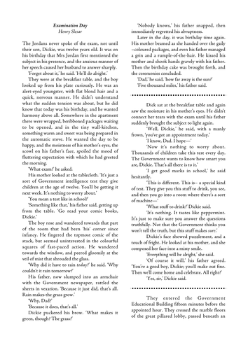 Dickies mother is anxious. I found the short story Examination Day written by Henry Slesar really interesting I enjoyed the tension the book provides. Short Story Questions Instructions.